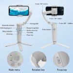 - قابلیت زوم و سهپایه: این گیمبال دارای دکمه زوم برای کنترل بهتر روی تصاویر است. همچنین، به همراه سهپایهای مناسب برای سطوح صاف ارائه میشود که برای فیلمبرداری ثابت و حرفهای در مکانهای مختلف مناسب است.