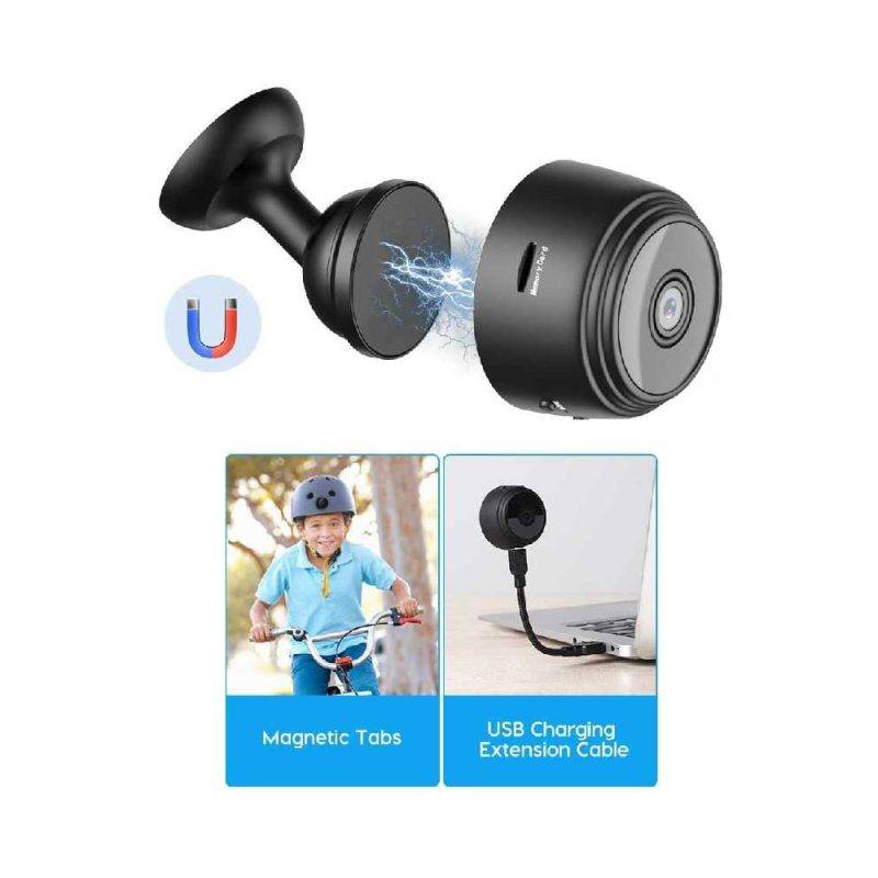 یکی از برجستهترین ویژگیهای دوربین A9-SXT1 طراحی مگنتی آن است. این دوربین کوچک به راحتی به سطوح فلزی مانند یخچال، تجهیزات ورزشی یا پایههای فلزی متصل میشود و امکان استفاده در مکانهای مختلف را فراهم میکند. ابعاد کوچک آن به شما امکان میدهد دوربین را به راحتی در کیف، جیب یا حتی روی لباس خود حمل کنید.
