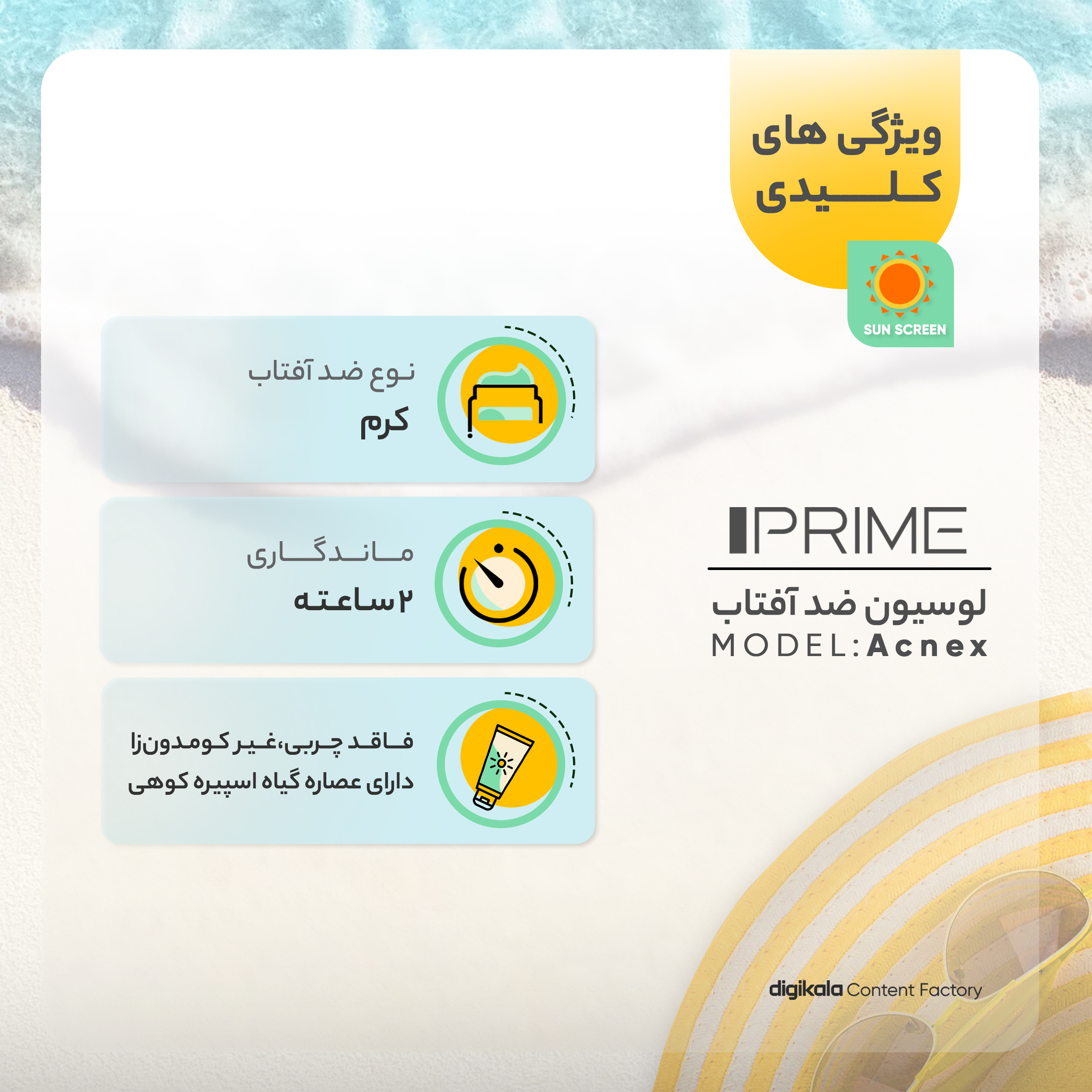 کرم ضدآفتاب رنگی پرایم مدل Acnex SPF60، مناسب پوست‌های چرب، حجم ۴۰ میلی‌لیتر